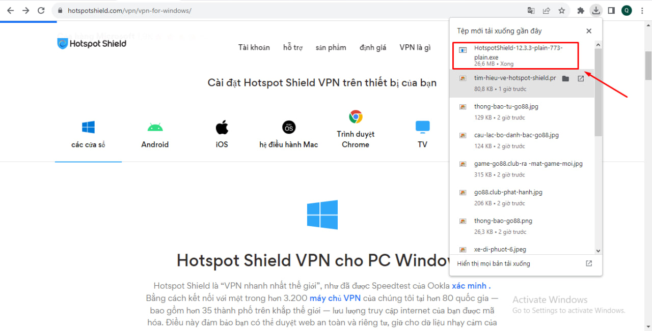 Truy cập trang chủ domain Go88.vn bằng phần mềm Hotspot Shield