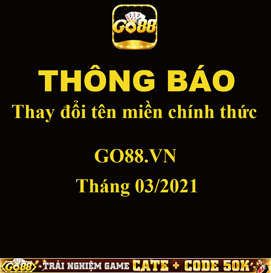 Vào tháng 3/2021 cổng game Go88 đã thay đổi domain chính thức thành Go88.vn. Xu hướng chơi thời điểm đó game đổi thưởng cá cược rất hot mà cổng game lại rất nổi tiếng nên được rất nhiều anh em quan tâm. Mỗi lần có domain mới là y như rằng từ người chơi trong cho đến ngoài cộng đồng cá cược lại đổ dồn về đây. Nói không ngoa thì cổng game này đang trở thành một sân chơi tốt nhất, đa dạng nhất từ trước đến nay.