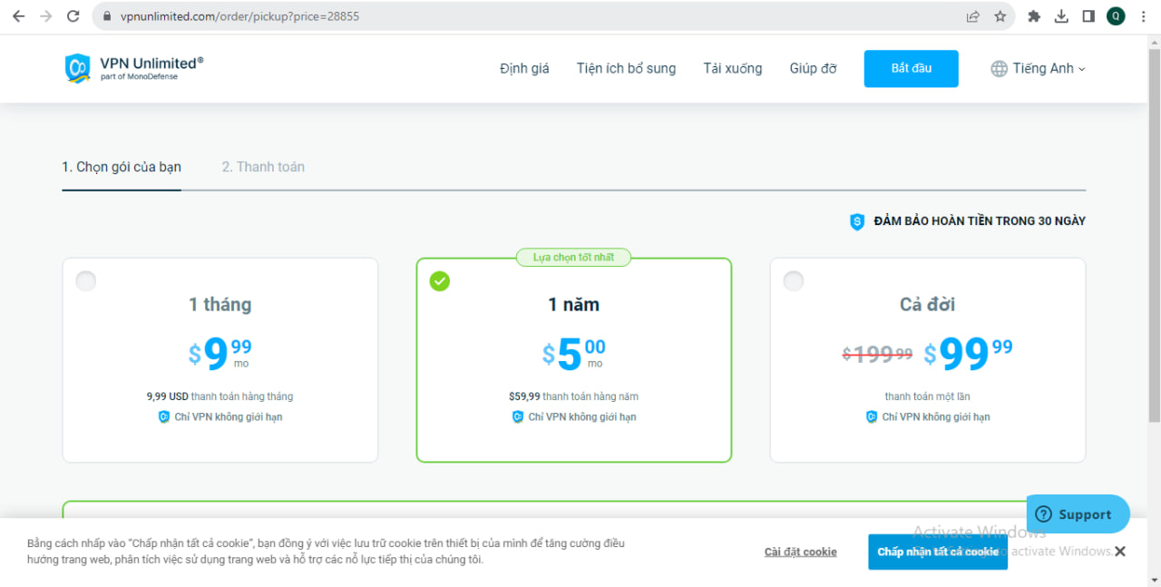Chi phí 1 tháng để thuê VPN Unlimited là bao nhiêu?