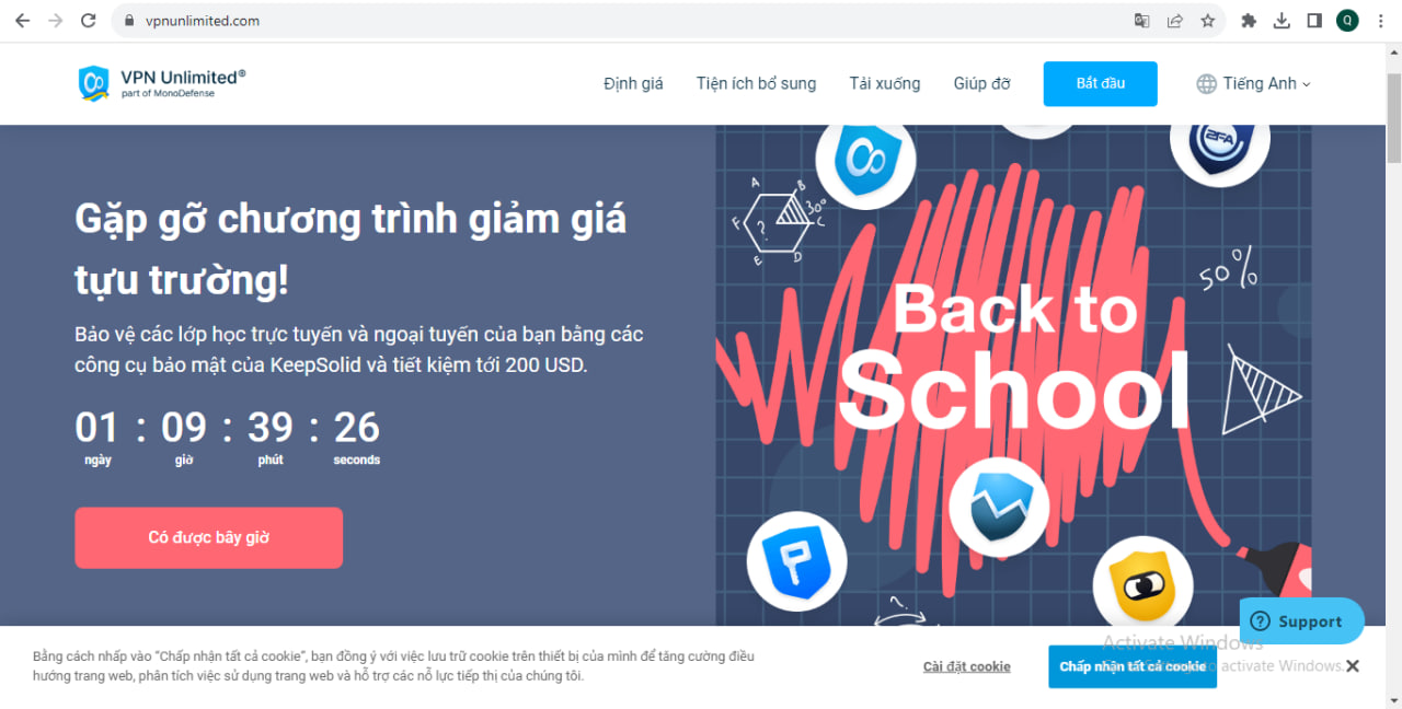 Để có thể sở hữu và trải nghiệm các dịch vụ của VPN Unlimited người dùng phải bỏ ra 9$ – 10$ trên một tháng tương đương với 216.000 VND – 240.000 VNĐ.
